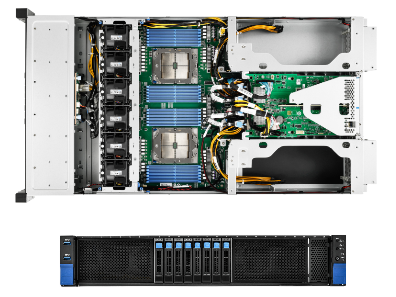 DDR5 6000メモリーをサポートする24個のDIMMスロット、4つのフルハイトPCIe 5.0 x16スロットと2つのハーフハイトPCIe 5.0 x16スロットを搭載。またフロントには8つのNVMe U.2ホットスワップドライブベイを搭載しています。※NVMe U.2ドライブはオプションで24基まで拡張可能です。