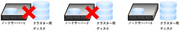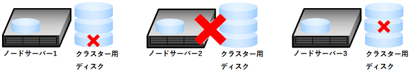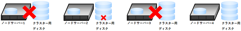 障害発生時の他、メンテナンスなどでノードサーバーを停止する場合においても、停止可能なノード数が構成によって変化いたしますので、注意が必要です。