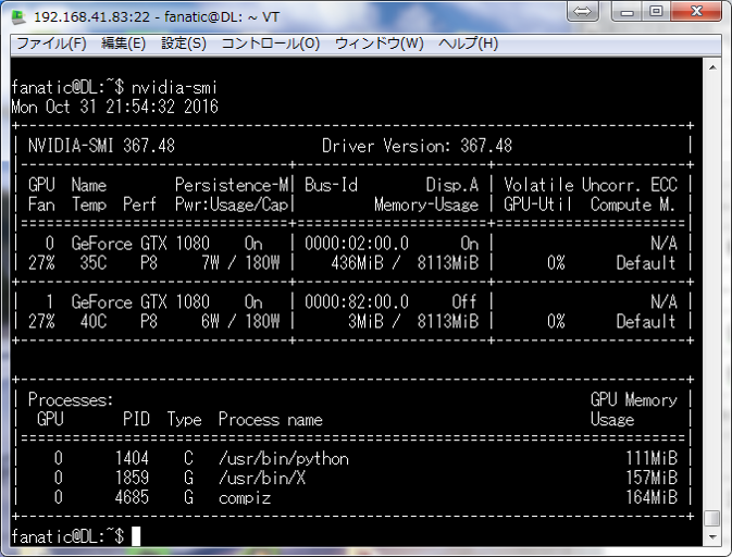 | Xeon E5-2640v4 x2 | DDR4-2133 128GB | NVIDIA GTX1080 x2 (SLIなし) |