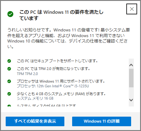 ここまでWindows 10からWindows 11へアップデート可否確認方法をご説明しました。