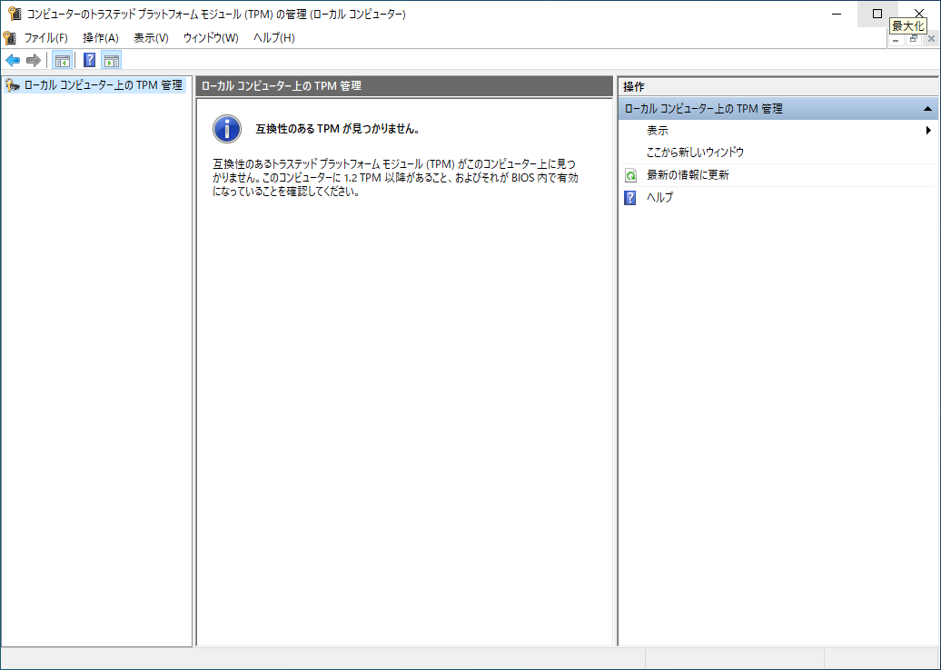 まず、現在搭載されているTPM状態を確認する方法は下記の通りです。
